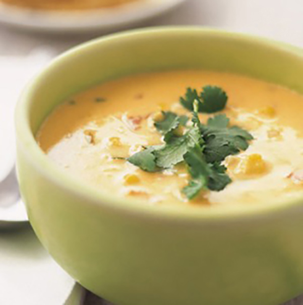 Cut the kernels off the corn cobs. Heat the butter in a large saucepan over medium heat. Add the corn kernels, capsicum, onion, and chili and stir to coat the vegetables in the butter. Cook, covered, over low heat, stirring occasionally for 10 minutes or until the vegetables are soft. Sprinkle with the flour and stir for a further minute on medium heat. Remove from the heat and gradually add the vegetable stock, stirring together. Add 2 cups of water and return to the heat. Bring to a boil then reduce the heat to low and simmer, covered, for 30 minutes or until the vegetables are tender. Cool slightly.